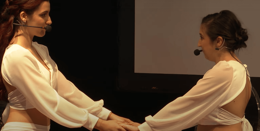 Martina: “Dipende. Tendenzialmente, a scuola, avviamo le lezioni con un breve riscaldamento che, a seconda degli allievi, gestiamo insieme o singolarmente, a turno, per poi passare alla vera e propria coreografia. Tutto varia in base alla tipologia di disabilità con cui ci approcciamo. Ad esempio, è capitato che ci fosse un ragazzo veloce nei movimenti che non consentiva a mia sorella di mantenere l’equilibrio oppure possono verificarsi eventi che io riesco a gestire più semplicemente. Viceversa, quando trattiamo con disabilità simili a quella di Virginia, è lei stessa ad occuparsene, senza il bisogno del mio aiuto.”