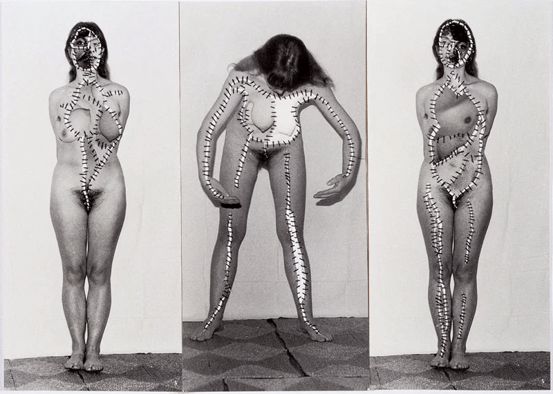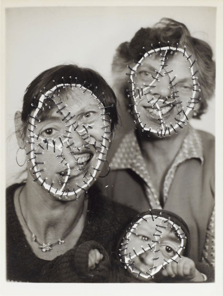 Queste lacerazioni e ricuciture si fanno realtà corporea nei ritratti di Soltau: un primo esempio è la serie “Self 1975-76“, una serie di autoritratti in cui interviene sulla fotografia attraverso il ricamo. Il soggetto è Soltau stessa: il suo volto è attraversato, inciso, da una matassa di fili neri che in ogni scatto si fa sempre più intricata. Il moltiplicarsi dei fili neri corrisponde a una maggiore deformazione del volto rispetto al suo stato iniziale, fino al punto di renderne indistinguibili i tratti: in un’intervista con Nina Mdivani l’artista stessa spiega meglio il significato di questo filo e la scelta di usare sè stessa come modella: