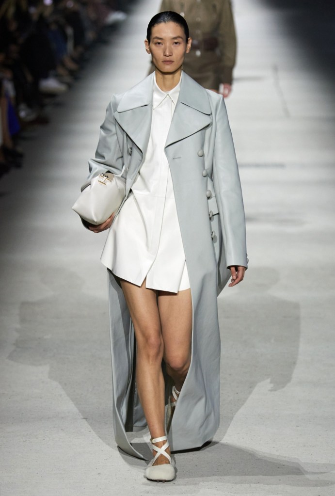 Tod’s è invece uno di quei brand che, grazie al suo stile classico e ai materiali di elevata qualità, si è fatto notare ancora di più soprattutto negli ultimi anni come marchio che rappresenta appieno il concetto di “old money style” (una delle tendenze -core del momento), insieme anche ad altre case di moda quali Ralph Lauren, Brunello Cucinelli, Loro Piana, Ermenegildo Zegna e via dicendo. Conosciuto negli anni passati più all’estero che in Italia come uno dei marchi più prestigiosi che rappresentano il savoir faire italiano (perdonate il francesismo), ora è molto noto anche nel nostro Paese sia per l’arrivo e lo sviluppo della tendenza old money, sia per l’inizio della partnership con Chiara Ferragni nel 2021, la quale, oltre a pubblicizzare i loro prodotti, è entrata a far parte del loro Consiglio d’Amministrazione. Alla Milano fashion week, il direttore creativo Walter Chiapponi ha portato sulla passerella classici capi sartoriali con un tocco di innovazione nelle proporzioni: cappotti lunghi fino al pavimento sopra a lunghezze mini e tagli over che imperano su giacche, abiti e bluse, oltre che capispalla.