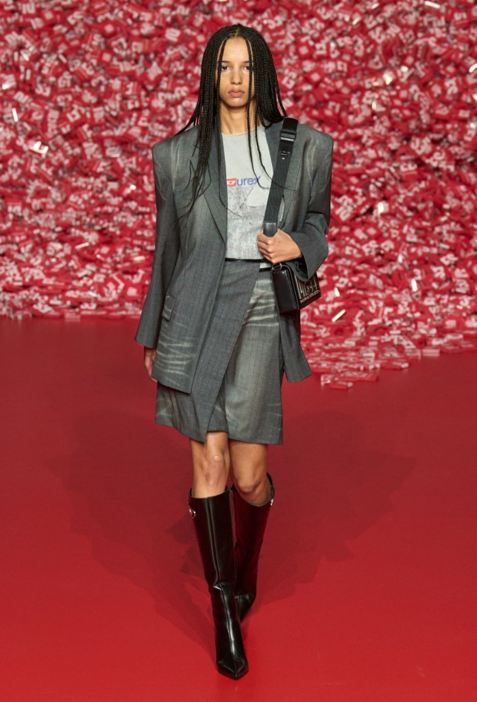 Prima dell’arrivo di Glenn Martens, il Diesel a noi noto era fatto principalmente di jeans e t-shirt con logo in bella vista e poco aveva a che fare con i grandi brand del pret-à-porter. Oggi invece la sfilata di Diesel è imperdibile, ed è irrinunciabile per gli addetti al settore informarsi sulle sue nuove collezioni, casual ma innovative. Cos’è cambiato? Il nuovo direttore creativo, già nella sua prima sfilata dell’autunno-inverno 2022/23, è partito dal denim, caposaldo dell’identità del brand, per lavorarlo in mille modi diversi creando spettacolari look da passerella, ma indossabili anche al di fuori. Inoltre, grande hype all’interno del brand si è riscontrato nelle sue cinture e borse, ormai iconiche, come per ogni grande marchio che si rispetti. Nella collezione presentata alla Milano fashion week di questo febbraio, il denim è stato sempre protagonista e si è declinato in una chiave sexy, forte della collaborazione con Durex, annunciata in occasione della sfilata, nella quale sono apparse anche t-shirt con il logo dell’azienda. Le modelle e i modelli hanno sfilato intorno ad una montagna di preservativi Durex che, si spera, non vadano sprecati, ma smaltiti correttamente. Inoltre, in tutti gli store Diesel saranno distribuiti preservativi gratuitamente, per abbattere i tabù e favorire il sesso sicuro.