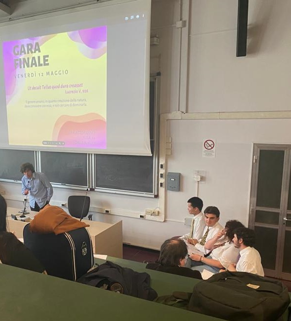 Venerdì 12 maggio si è svolta a Palazzo Nuovo la finale di DibattiTo, il gruppo di dibattito classico dell’Università degli Studi di Torino. Il tema della discussione è stato: “Il genere umano, in quanto creazione della natura, deve convivere con essa, e non cercare di dominarla”, riferimento al De Rerum Natura di Lucrezio (“Ut decuit Tellus quod dura creasset”, libro V, v. 926). Nel corso dell’incontro sono state anticipate alcune novità relative alla prossima edizione, illustrate in collaborazione con due esperti e studenti di Giurisprudenza. Le regole della competizione si possono trovare in questo articolo di Nicola Gautero.