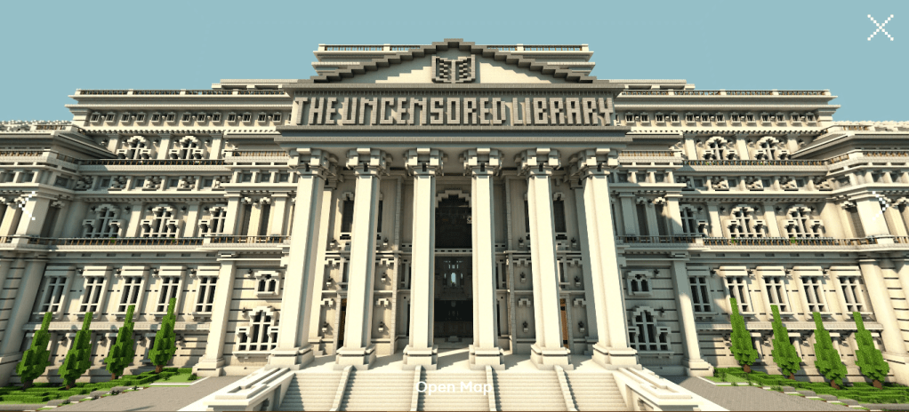 Creata il 12 marzo 2020, in occasione della Giornata Mondiale contro la Cyber Censura, l’Uncensored Library è una biblioteca digitale all’interno di una mappa server di Minecraft, accessibile in due modi: scaricando tale mappa dal sito web ufficiale o connettendosi al proprio server Minecraft. Il suo scopo è quello di aggirare la censura alla libertà di stampa presente in molti paesi, sia online che offline, permettendo un luogo sicuro in cui chiunque possa fruire di contenuti, articoli e reportage che sono stati messi all’oscuro, così come di conoscere le storie e i personaggi dietro questi. Soprattutto chi per quella libertà di parola ha osato, si è esposto e molto spesso ne è diventato martire.