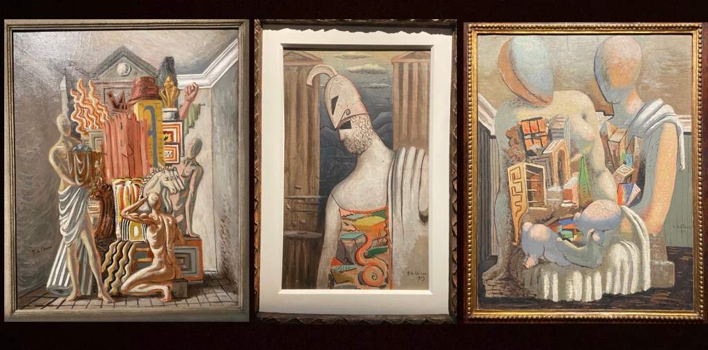 Per i surrealisti difatti, la sua trasformazione avvenuta a partire dal 1919 a favore del classicismo, era incomprensibile e soprattutto inferiore rispetto all’acuta pittura metafisica degli anni ‘10.