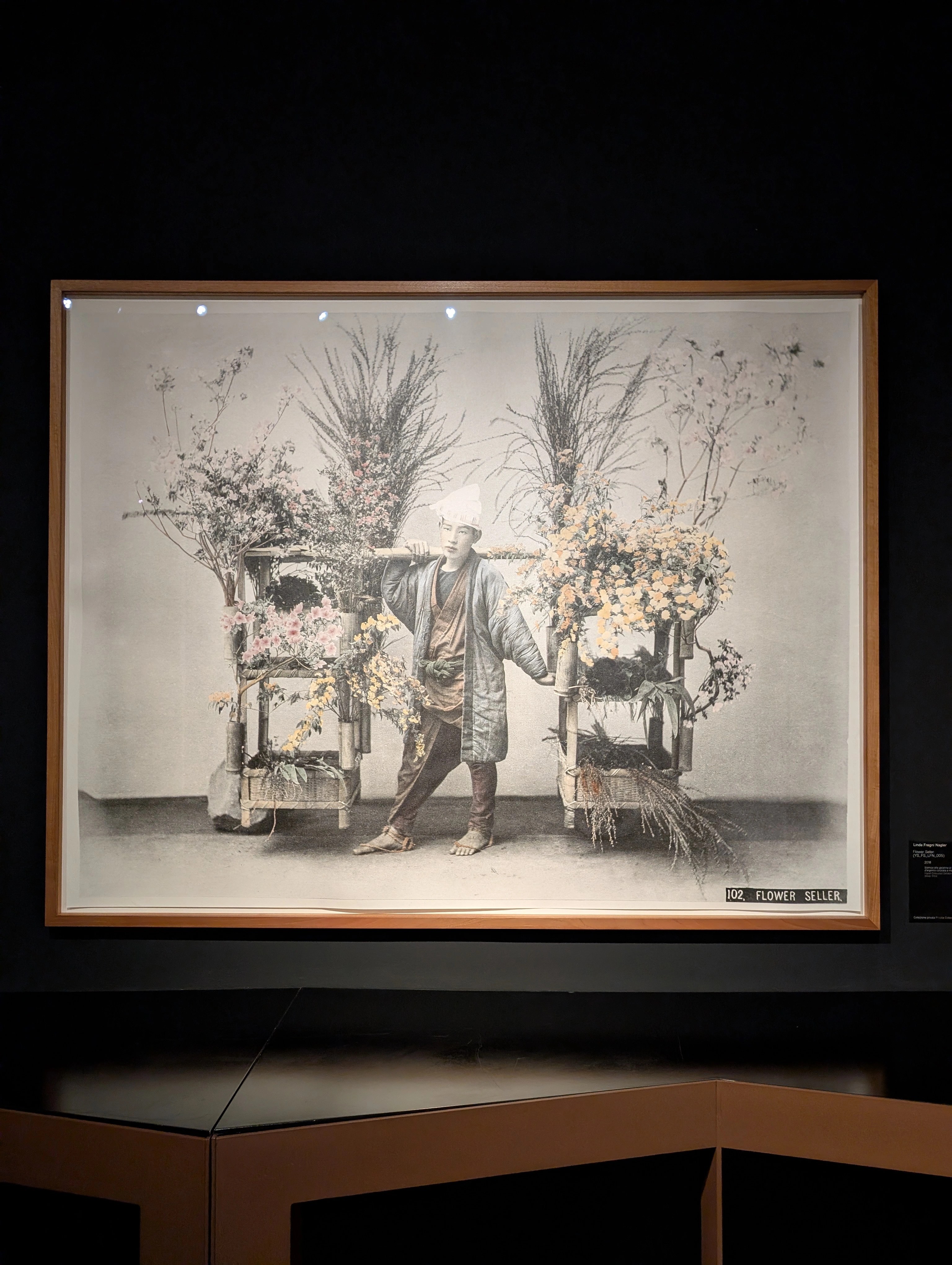 Al centro della mostra, il lavoro dell’artista contemporanea Linda Fregni Nagler, che, nel corso di vent’anni, ha raccolto e selezionato una serie di fotografie originali della Scuola di Yokohama (Yokohama Shashin), risalenti a metà Ottocento. Le immagini, testimoni di un mondo che non esiste più, rappresentano i venditori di fiori (hanauri) dell’epoca, figure dalle quali emergono frammenti di mistero, fascino e poesia.
