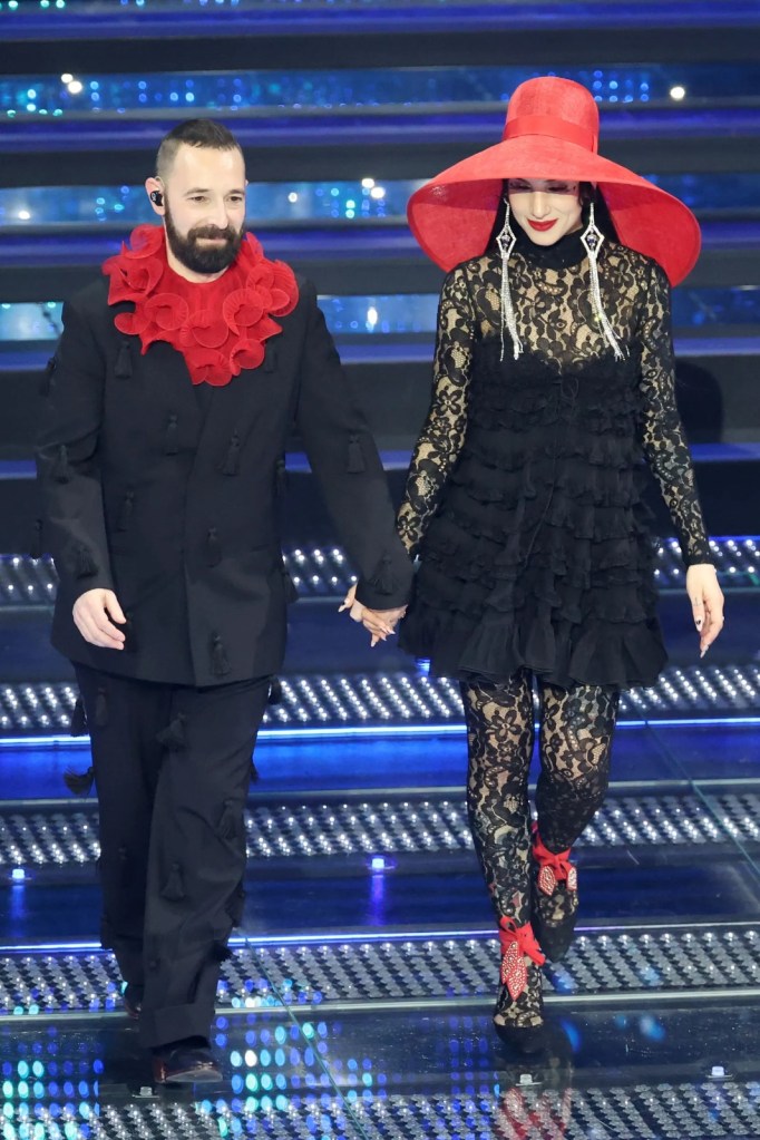 Peraltro Corsi è stato scelto da Alessandro Michele, all’epoca direttore creativo di Gucci, per la sfilata Cruise 2018. E sono stati realizzati proprio da Michele, da un anno passato a Valentino, gli abiti indossati dai Coma Cose. Il duo si è fatto notare per gli outfit coordinati, eleganti e ironici. Notevole la scelta di Fausto di indossare una doppia collana di perle sopra la cravatta e il cappello a falde larghissime di California, di colore rosso acceso, abbinato ai fiocchi alle caviglie. Dobbiamo ringraziarlo anche solo per avere portato un po’ di colore in un Sanremo che da anni vede scelte poco coraggiose e tanto nero, forse troppo.