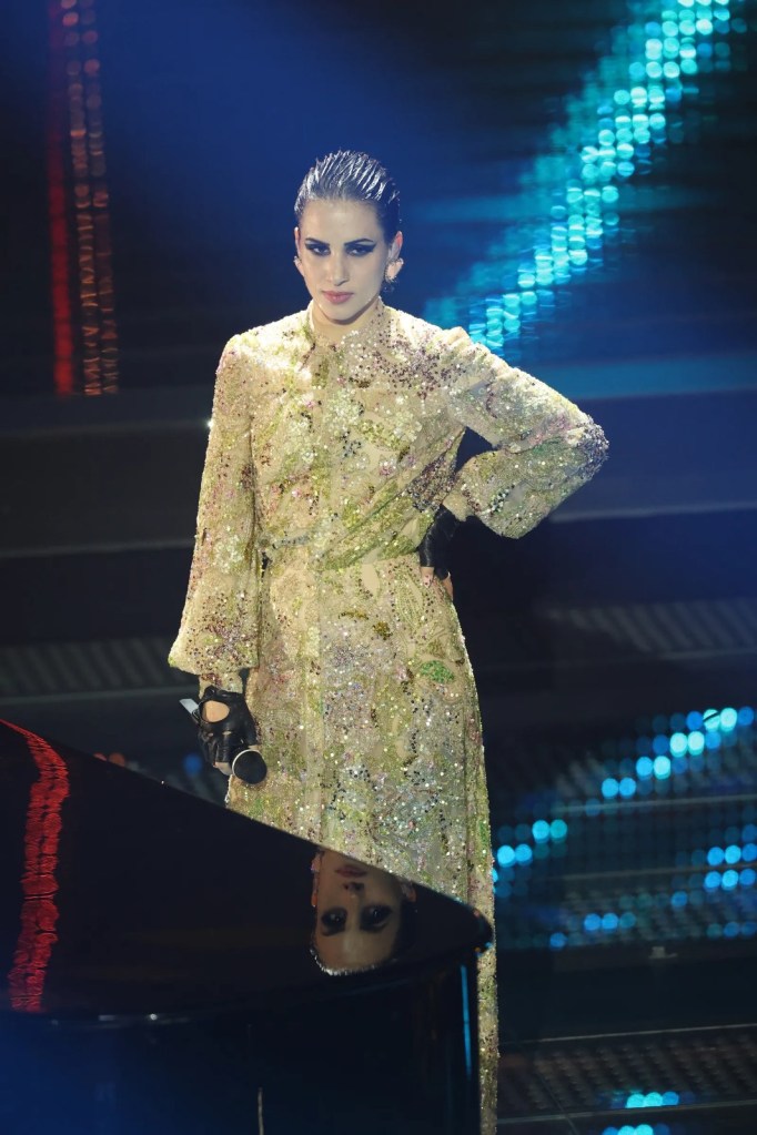 Restando sulle stesse note, Damiano David (non più Damiano dei Maneskin), è tornato sul palco dell’Ariston con il suo progetto da solista, separato dalla sua band ma non dal suo stilista di riferimento, anche in questo caso Alessandro Michele. Il cantante ha trasformato la sua estetica da quella glam-rock della vittoria a Sanremo a una più legata all’eleganza vintage italiana, più pulita e lineare, ma sempre originale e androgina. Bellissimi i guanti di pizzo nero della prima esibizione e, della seconda, il collier di Bulgari, brand del quale è nuovo Global PR Ambassador.
