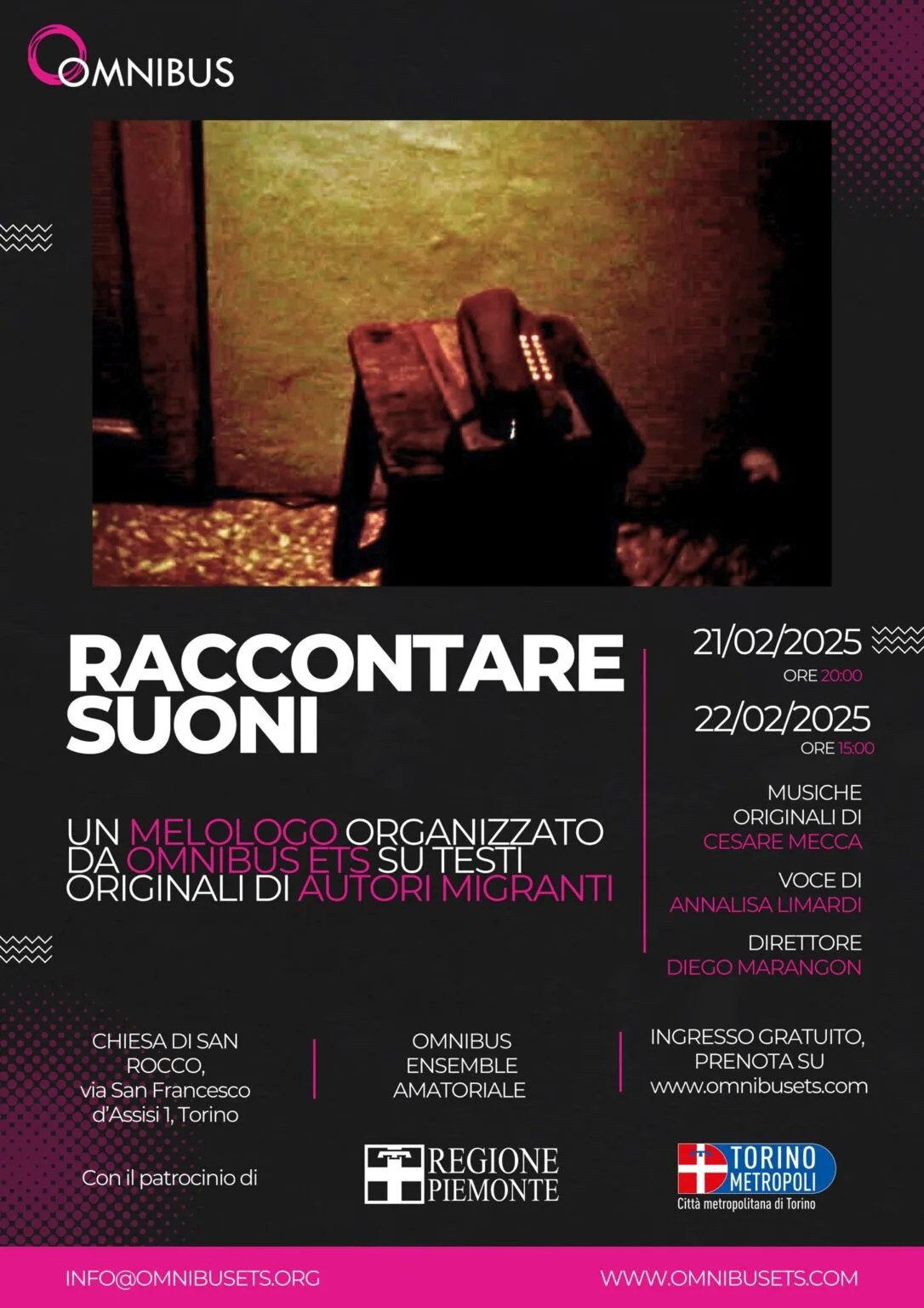 Il 21 e il 22 febbraio scorsi, la redazione di The Password, il giornale degli studenti di UniTo, ha avuto il grande onore di partecipare a “Raccontare suoni”, un evento organizzato dall’associazione culturale Omnibus ETS, di cui la nostra testata online è Social Media Partner. Il direttore d’orchestra Diego Marangon ha guidato magistralmente l’esecuzione dei brani composti dal giovane Cesare Mecca e, contestualmente, l’attrice Annalisa Limardi ha prestato la propria voce per la lettura di alcuni testi scritti da autori stranieri.