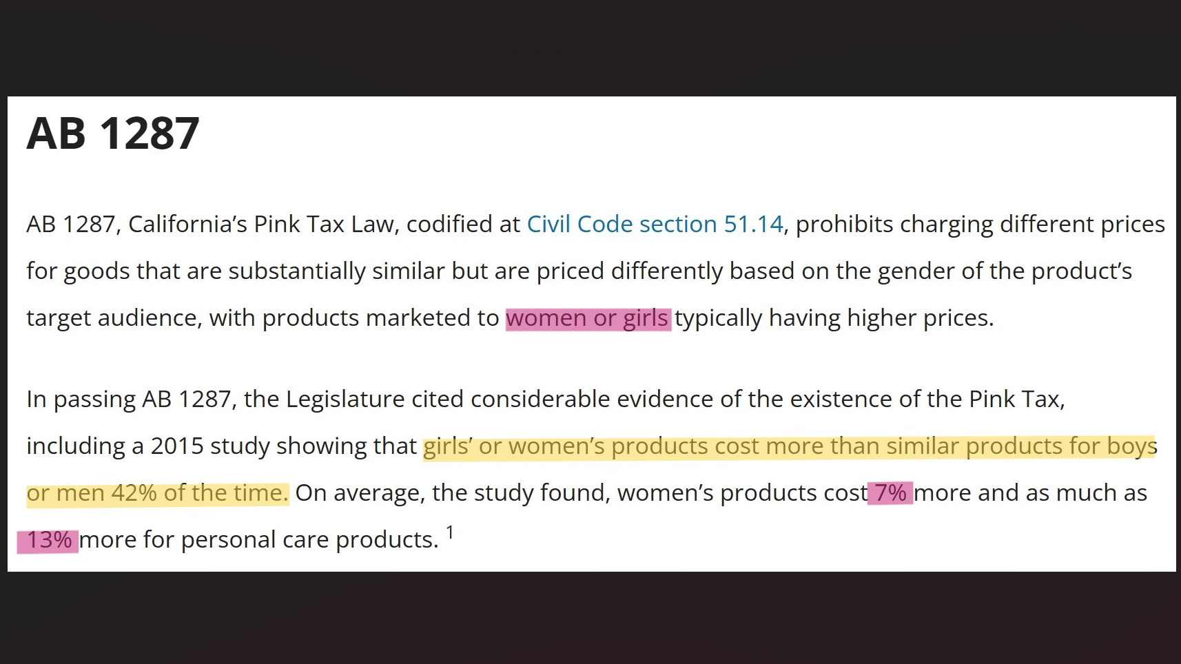 New York City Department of Consumer Affairs, From Cradle to Cane: The Cost of Being a Female Consumer, 2015, ultima consultazione: 10/01/2026, link: https://www.nyc.gov/assets/dca/downloads/pdf/partners/Study-of-Gender-Pricing-in-NYC.pdf.