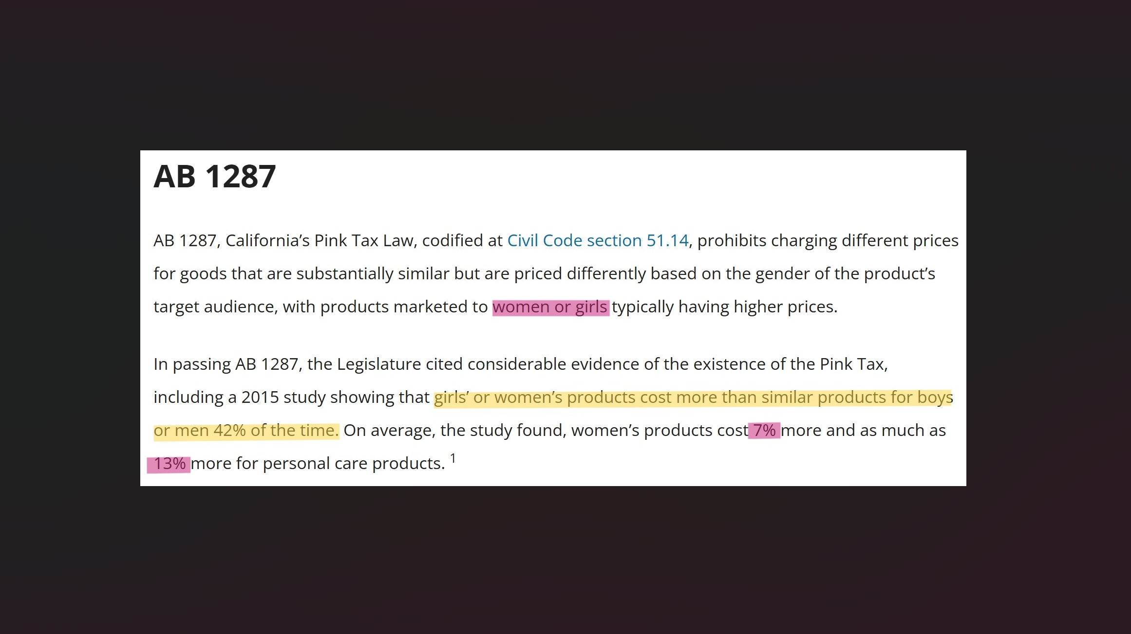 Bonamoneta Giorgia, Cos’è la pink tax e perché le donne pagano di più, Money.it, 26/10/2022, ultima consultazione 10/01/2026, link: https://www.money.it/tassa-rosa-cos-e-e-su-quali-prodotti-donne-pagano-di-piu.